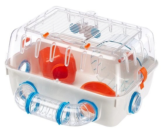 - Dołączone wyposażenie klatki: domek, kołoworotek, tunel, miska