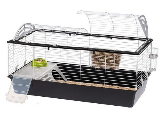 Klatka jest przewidziana dla królików lub większych gryzoni, dlatego pozwala odchylić cały sufit lub jego połowę - duży otwór daje łatwy dostęp do pupila. Ponadto oddzielana kuweta pozwala również łatwo utrzymać higienę w klatce.